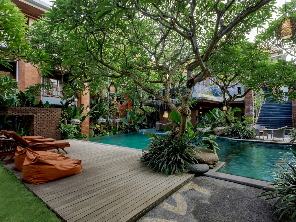 Situated in one of the popular tourist areas, Legian, Fourteen Roses Boutique Hotel will give you a memorable experience from your stay at this hotel. Despite its location that nestled in the tourist hub, the hotel has a very unique design, Ubud-style design, with a lot of trees and greeneries combined with a Balinese traditional architecture that will make you feel relaxed and far from the hustle bustle of the city. In addition to this, a great hospitality service is also provided through the hotel’s staffs that are ready to help whenever you need.
